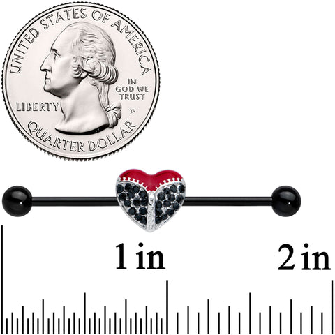 14 Gauge Black CZ Gem Black Unzipped Heart Industrial Barbell 38mm