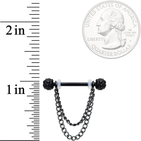 Don't look now but if you want your breasts to look their best this pair of 14 gauge nipple jewelry is just right! Made with 5/8" black plated over 316L surgical grade stainless steel straight barbells, these nipple piercings feature black gem paved ball ends and sexy double chain dangles for eye-catching movement. Sold as a set of two.