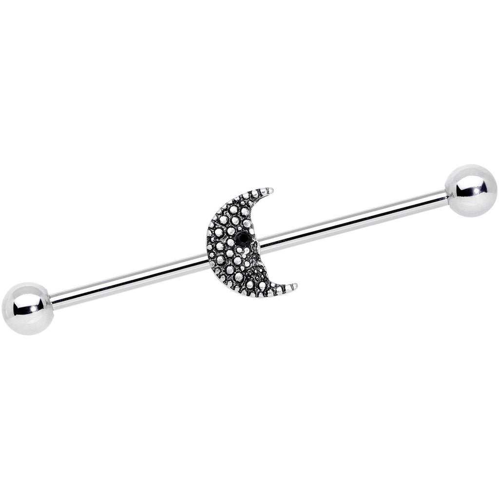 14 Gauge Black Gem Night Skull Crescent Moon Industrial Barbell 38mm
