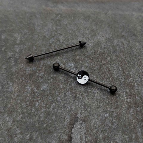14 Gauge Black Ghost Yin Yang Industrial Barbell Set of 2