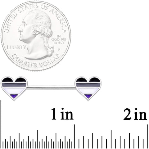 14 Gauge Black Grey White Asexual Pride Heart Barbell Nipple Ring Set