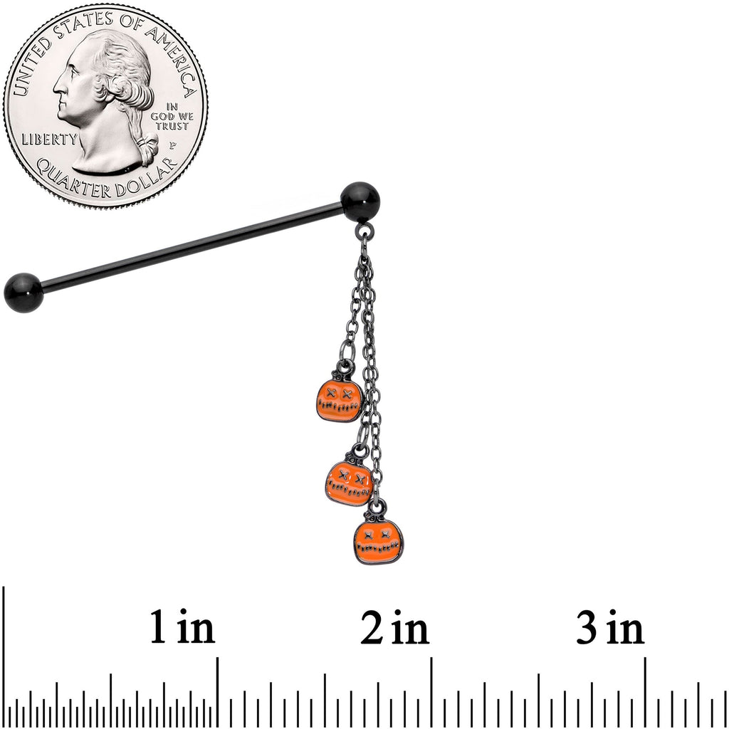 14 Gauge Black Halloween Pumpkin Chain Dangle Industrial Barbell 38mm