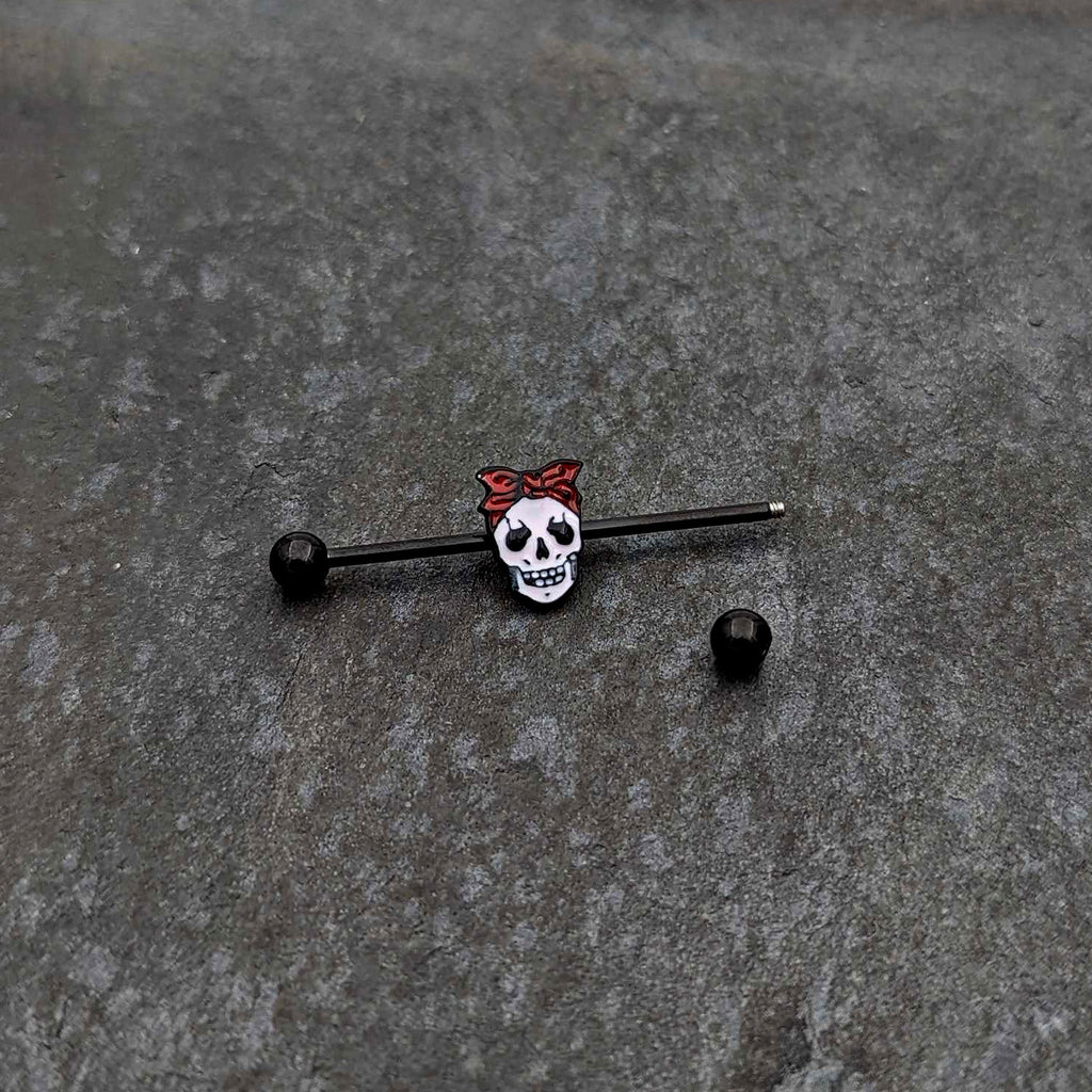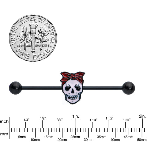 14 Gauge Black Halloween Skull Kerchief Industrial Barbell 38mm