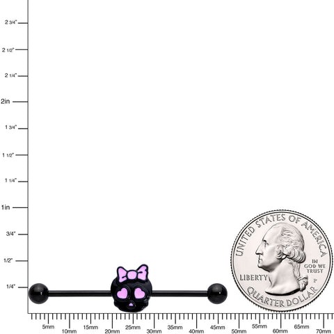 14 Gauge Black Heart Bow Black Skull Halloween Industrial Barbell 38mm