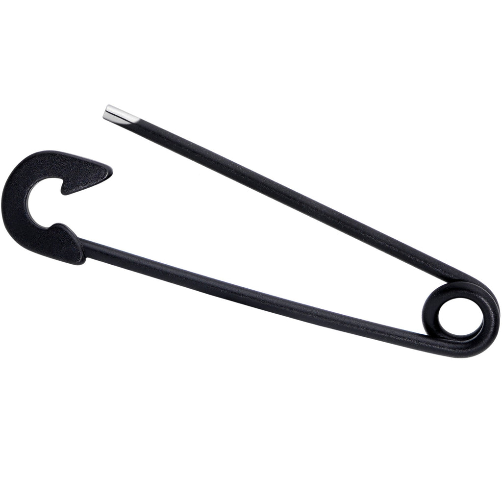 Old school punk gets a colorful update with this 14 gauge helix barbell! It's made with a 1 1/2" matte black electroplate over 316L surgical grade stainless steel straight barbell that's shaped exactly like a giant safety pin! Guaranteed to hold your look together, this project bar just needs a pair of combat boots and a mohawk for a trip back in time to the golden days of punk rock.Specifications
