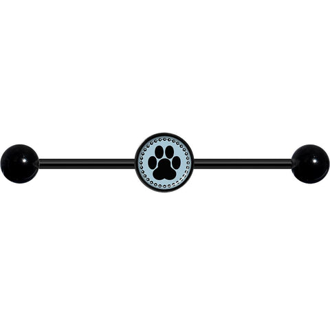 14 Gauge Black on Blue Paw Print Black Industrial Barbell 37mm