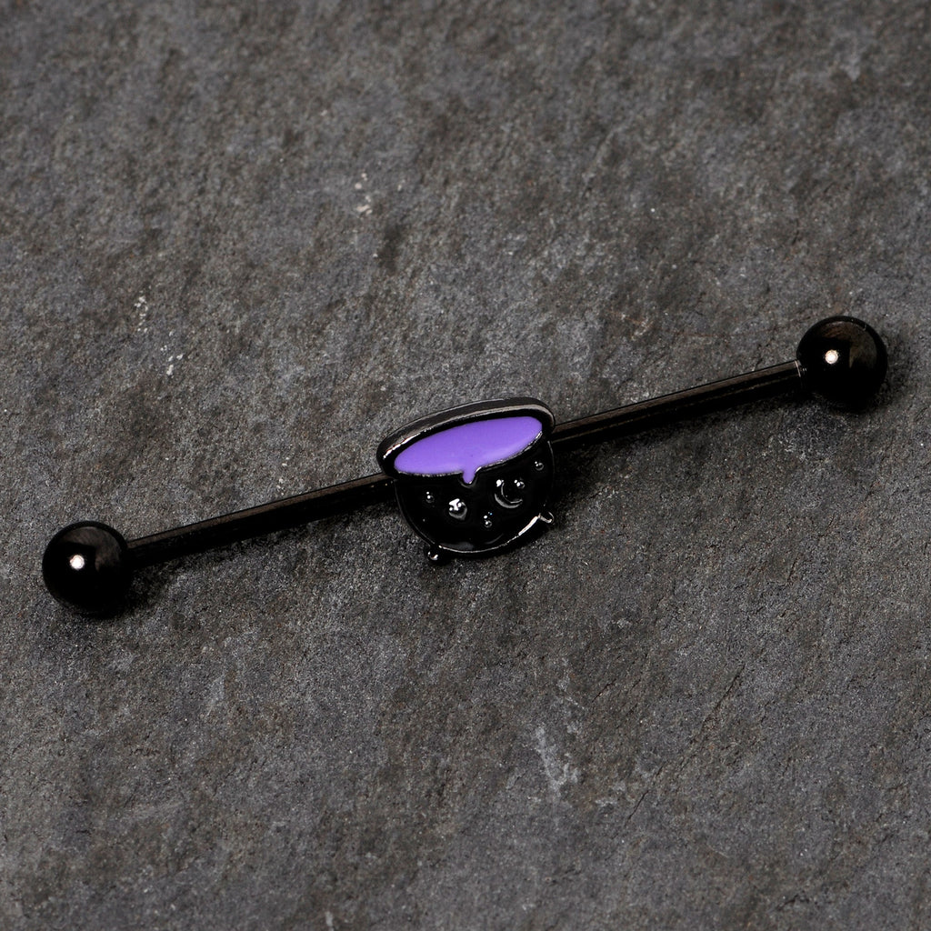 14 Gauge Black Purple Cauldron Halloween Industrial Barbell 38mm
