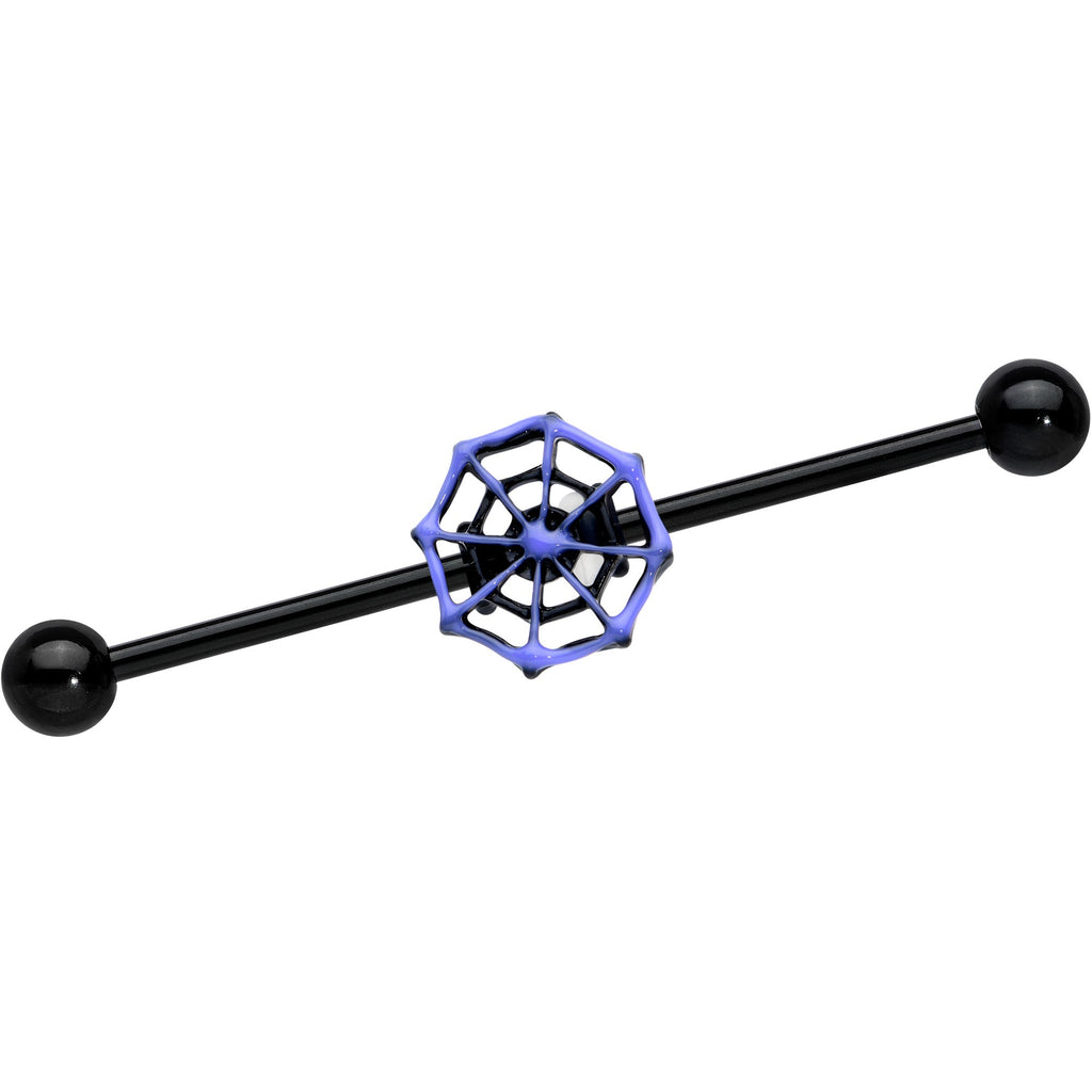 14 Gauge Black Purple Spider Web Halloween Industrial Barbell 38mm