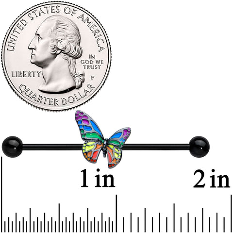 14G Black Rainbow Pride Butterfly Industrial Barbell 38mm