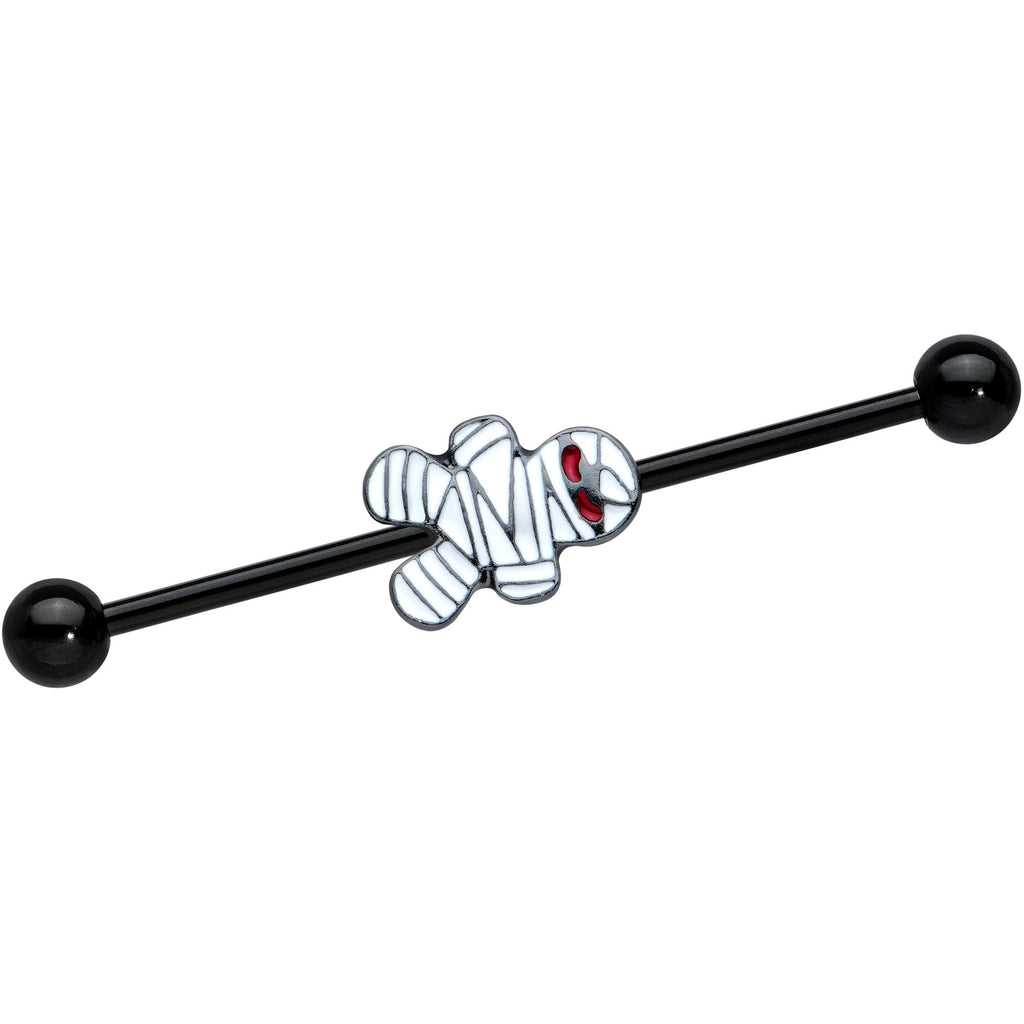 14 Gauge Black Red Eyed Mummy Halloween Industrial Barbell 38mm