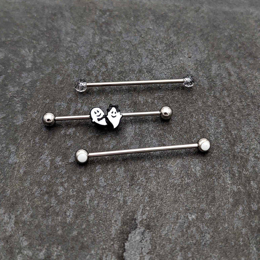 14 Gauge Black Tie Ghosts Glow in Dark Industrial Barbell 38mm Set of 3