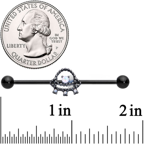 14G Black White Faux Opal UFO Industrial Barbell 38mm