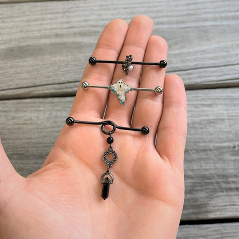 14 Gauge Black White Gem Black Cat Halloween Industrial Barbell 38mm