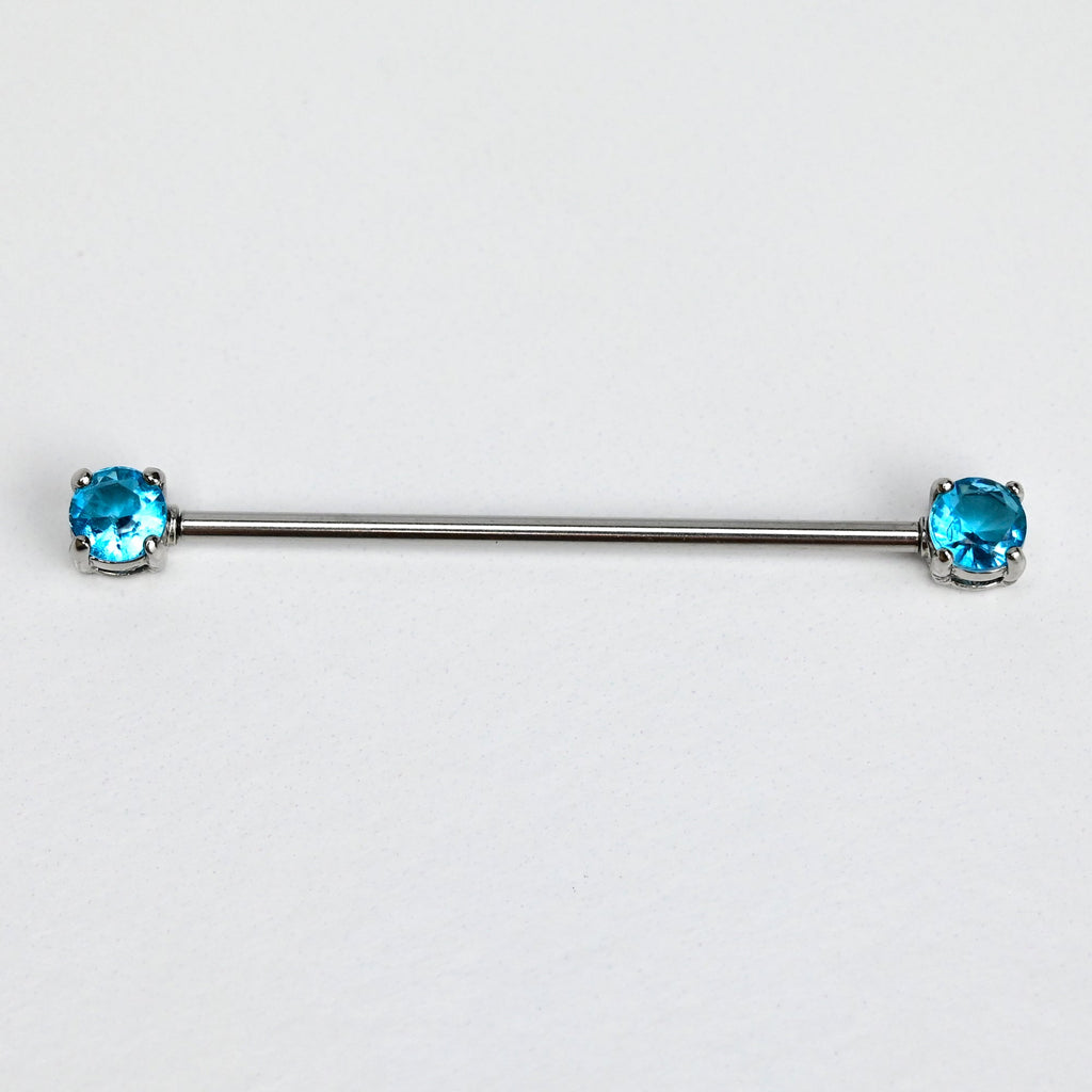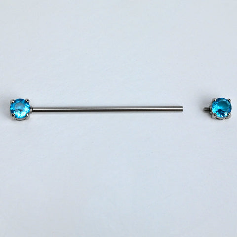 14 Gauge Blue CZ Gem Internally Threaded Industrial Barbell 38mm