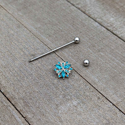 14 Gauge Blue CZ Gem Ornate Snowflake Industrial Barbell 38mm