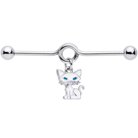 14 Gauge Blue Eyed White Cat Dangle Project Barbell 38mm