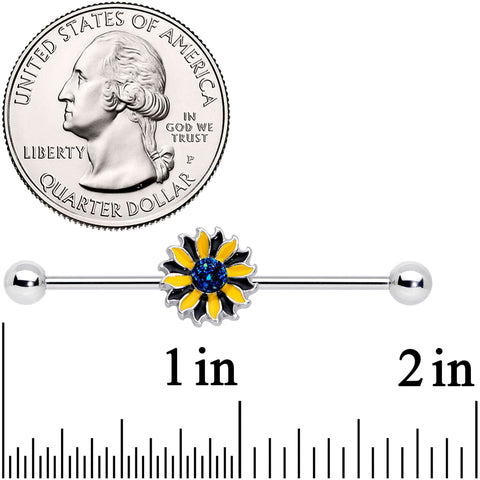 14 Gauge Blue Faux Druzy Yellow Sunflower Industrial Barbell 38mm