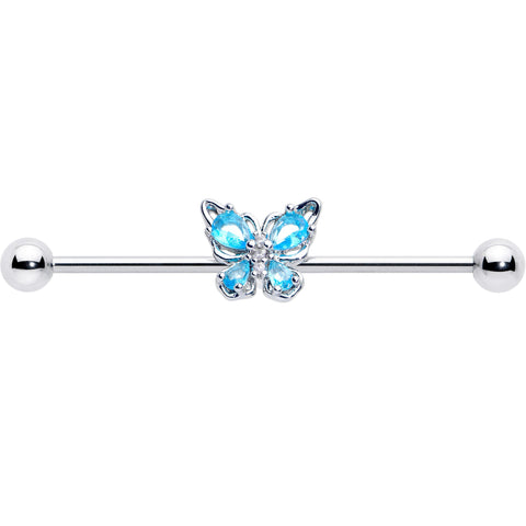 14 Gauge Blue Gem Baroque Beauty Butterfly Industrial Barbell 38mm