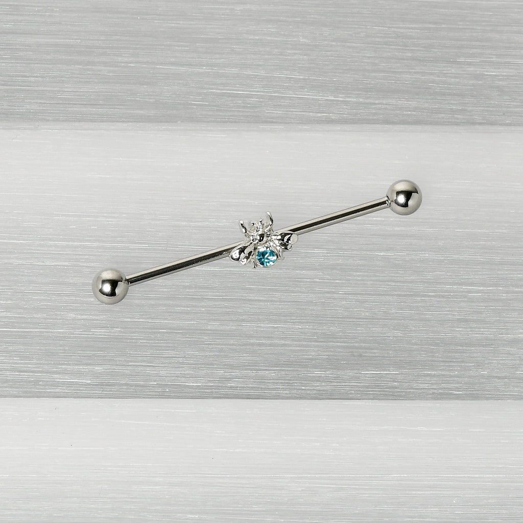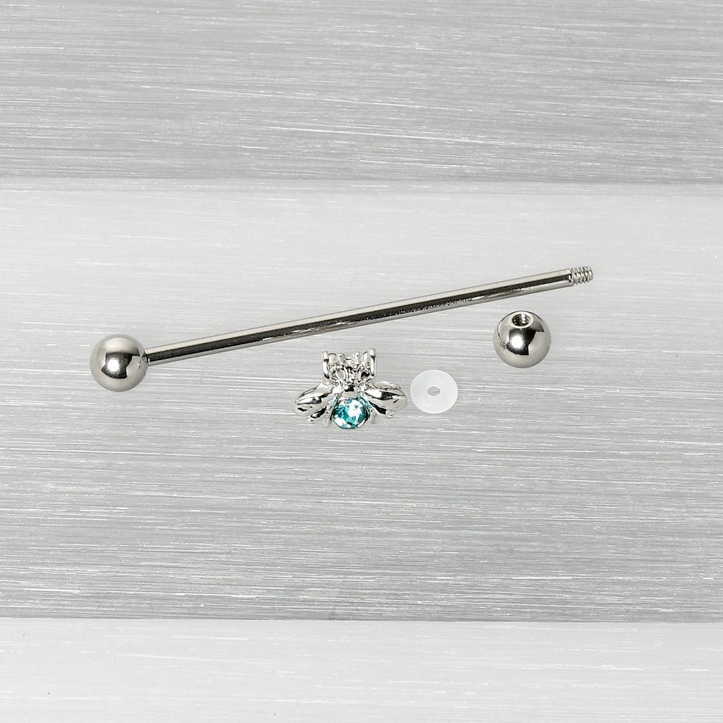14 Gauge Blue Gem Bee Beautiful Insect Industrial Barbell 38mm