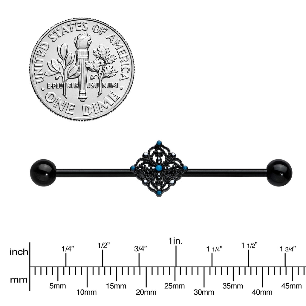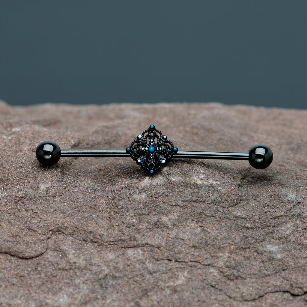 14 Gauge Blue Gem Black Lacy Rhombus Industrial Barbell 38mm