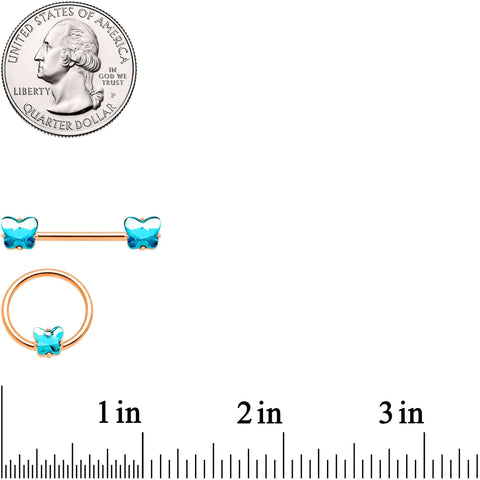 5/8" 1/2" Blue Gem Butterfly Rose Gold Hue BCR Barbell Nipple Ring Set