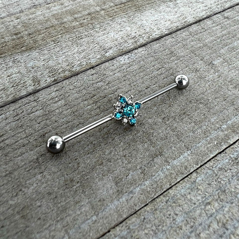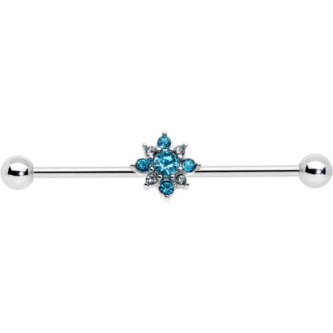 14 Gauge Blue Gem Frosty Snowflake Christmas Industrial Barbell 38mm