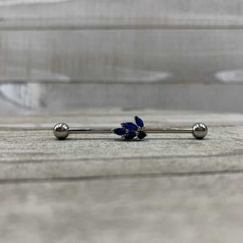 14 Gauge Blue Gem Leaf Cluster Industrial Barbell 38mm