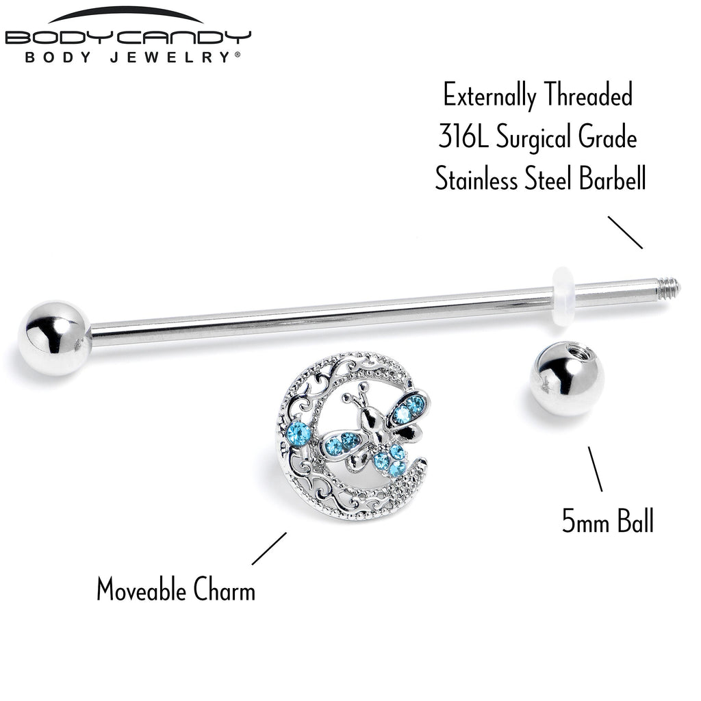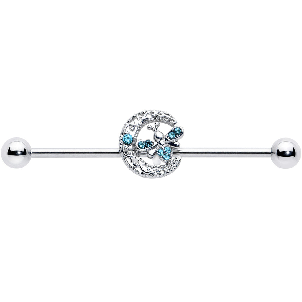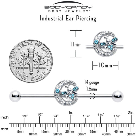14 Gauge Blue Gem Lunar Dragonfly Industrial Barbell 38mm