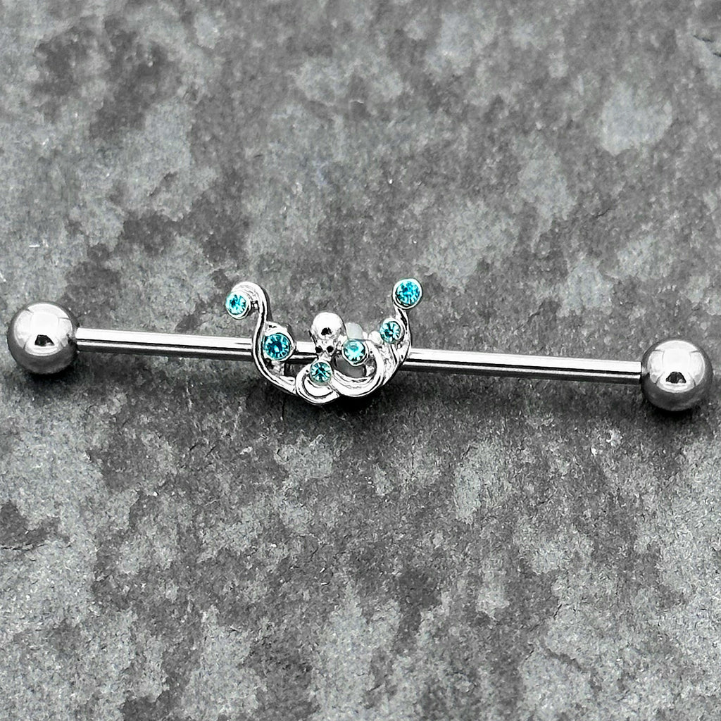 14 Gauge Blue Gem Scrolling Elegance Industrial Barbell 38mm