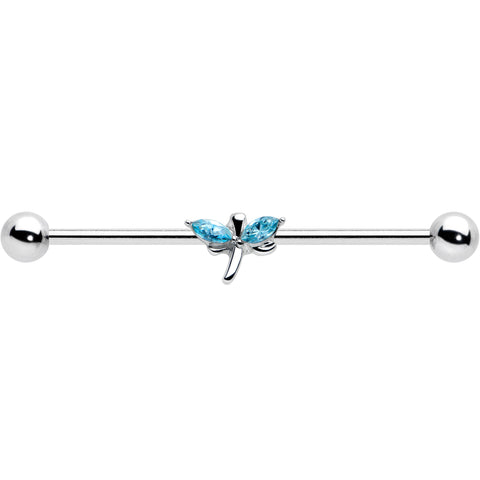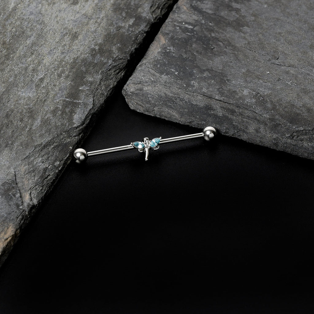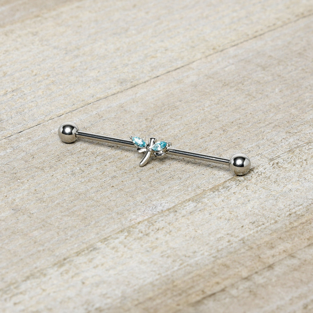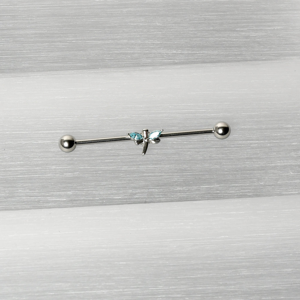 14 Gauge Blue Gem Simple Stylized Dragonfly Industrial Barbell 38mm