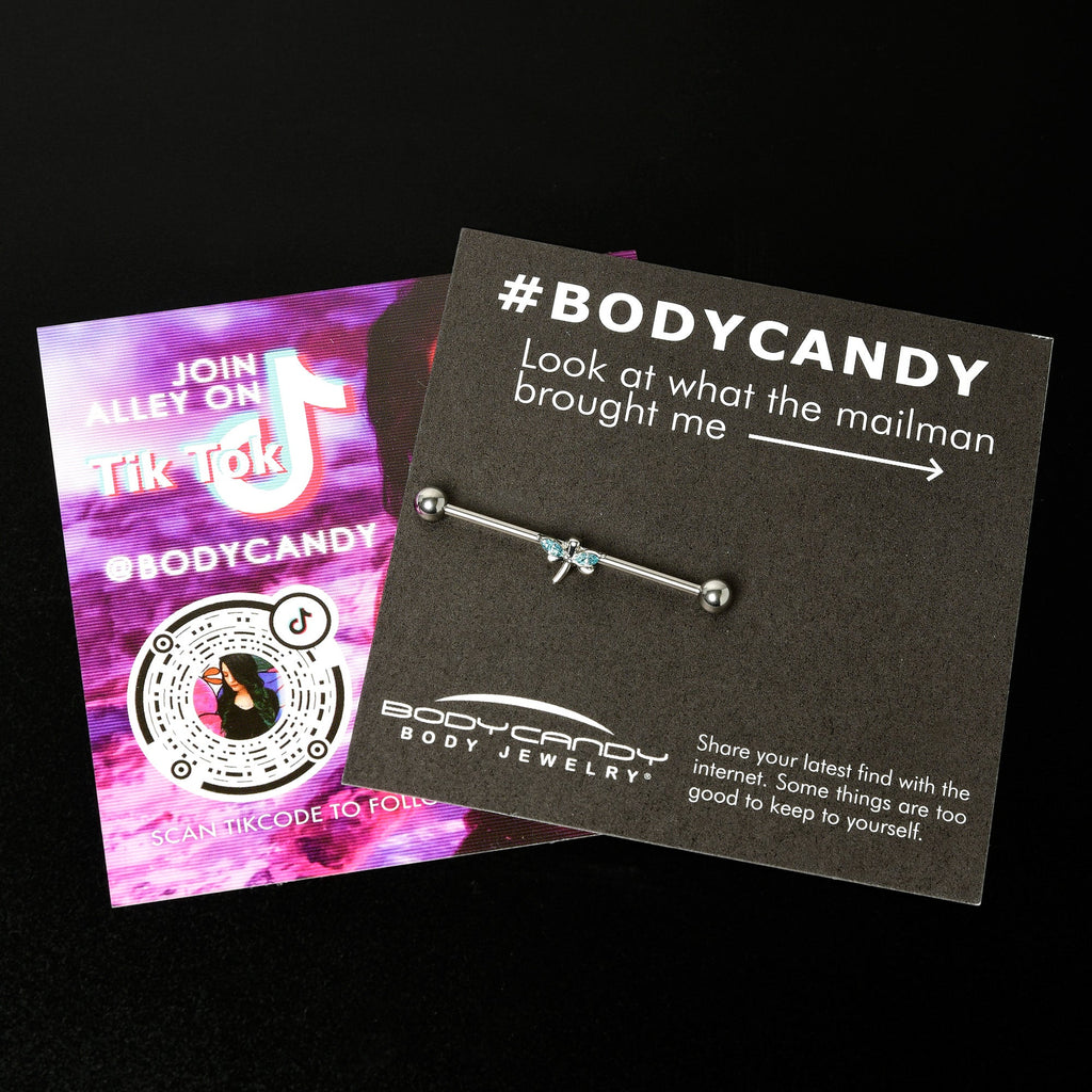 Dragonflies are constantly on the move so sometimes they just want to.....hang out. This 14 gauge helix barbell is made with a 1 1/2" durable 316L surgical grade stainless steel straight barbell with 5mm ball ends. It features a stylized dragonfly charm, the simplicity of its style offset by the blue gems that make up its wings. You can even slide it up and down the length of the barbell for the perfect look. The contrast of stylish luxury against the clean lines of the wings is extremely eye-catching and perfect industrial jewelry for summer! You'll want to hang out with this dragonfly all the time!Specifications