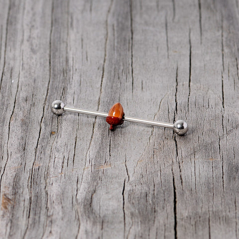 Great big oak trees grow from little acorns. Hot fall looks can too with this autumn-appropriate 14 gauge industrial jewelry! It's made with a 1 1/2" durable 316L surgical grade stainless steel straight barbell and features a moveable light brown acorn charm that will feel perfect for fall, or any season!Specifications