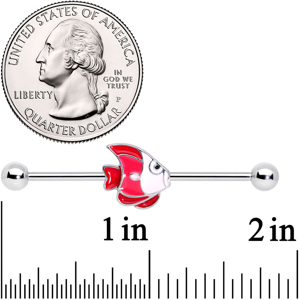 If you're fishing for a new look for your industrial piercing, don't flounder for answers.....go under the ocean with this 14 gauge helix barbell! It's made with a 1 1/2" durable 316L surgical grade stainless steel straight barbell with 5mm ball ends. It features a wide-eyed brown and peach fish charm with a sweet and earthy appearance. And you can slide it up and down the length of the barbell to get just the look you're angling for! Up your look by taking it down the shore with this nifty, nautical, fish barbell earring!Specifications