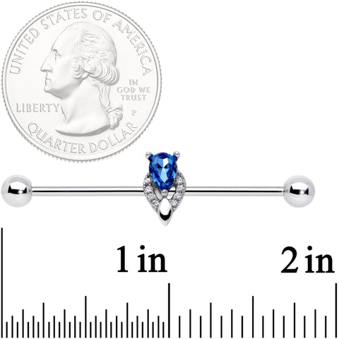 14 Gauge Clear Blue Teardrop Gem Art Deco Industrial Barbell 38mm