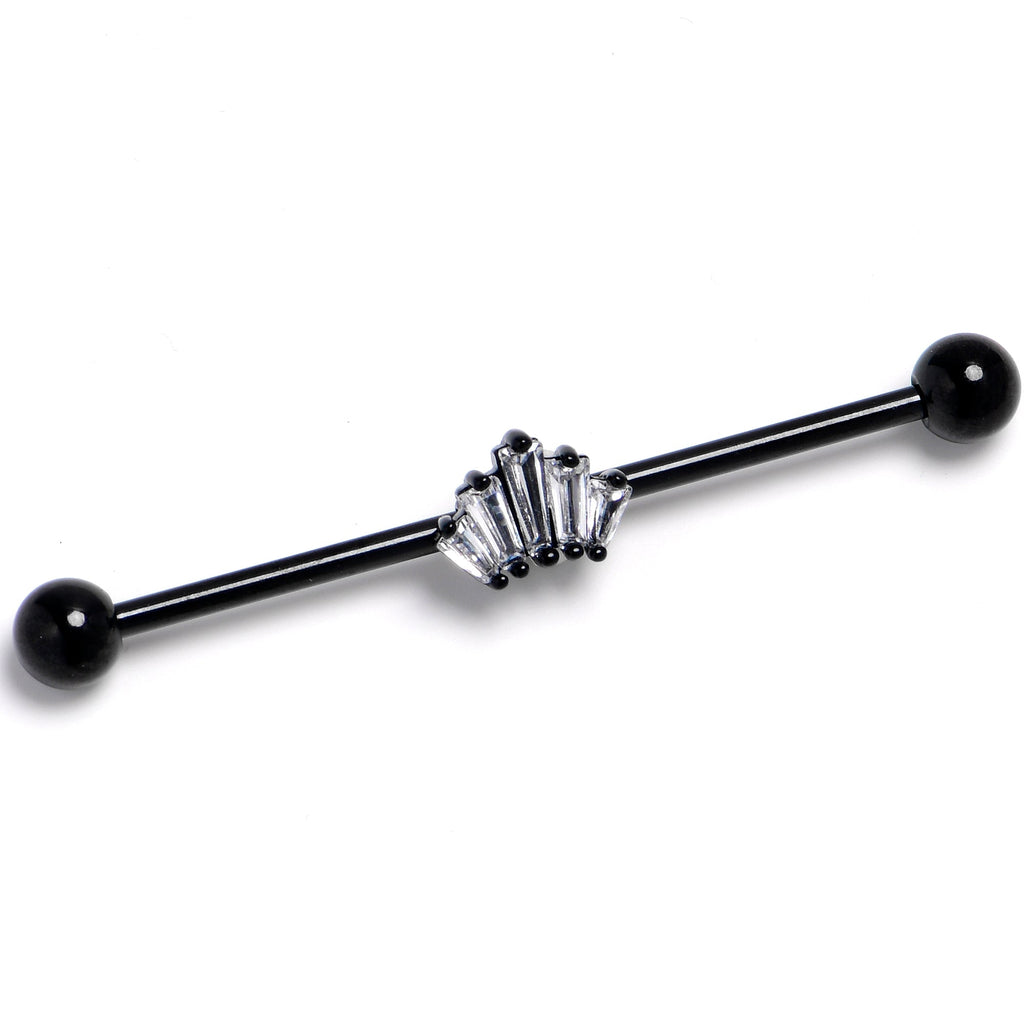 14G Clear CZ Gem Black Regal Rectangles Industrial Barbell 38mm
