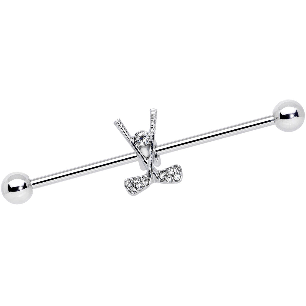 14 Gauge Clear CZ Gem Crossed Golf Clubs Industrial Barbell 38mm
