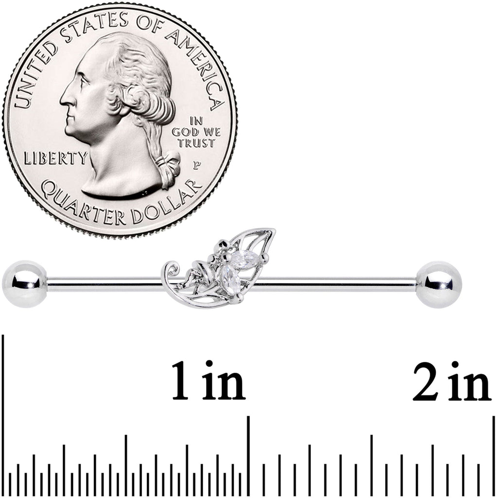 14 Gauge Clear CZ Gem Fairy Leaf Industrial Barbell 38mm