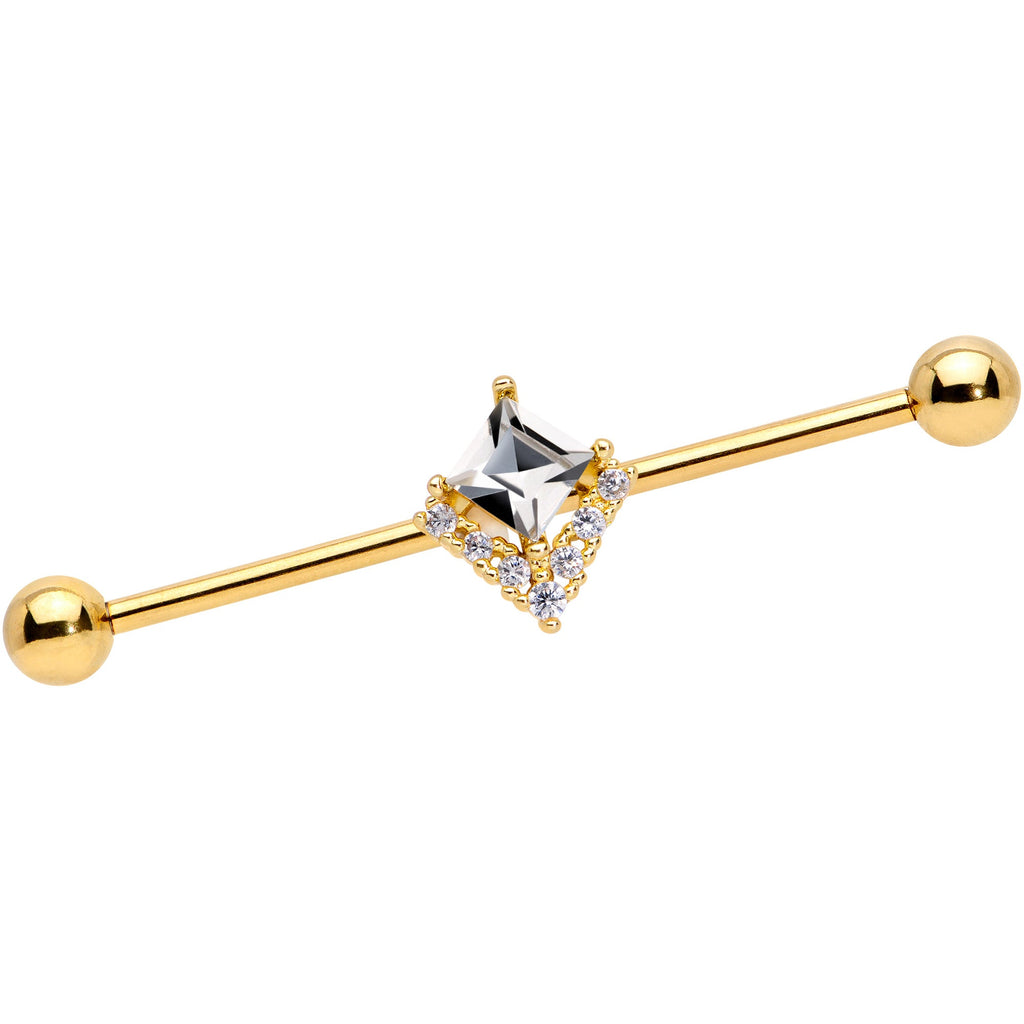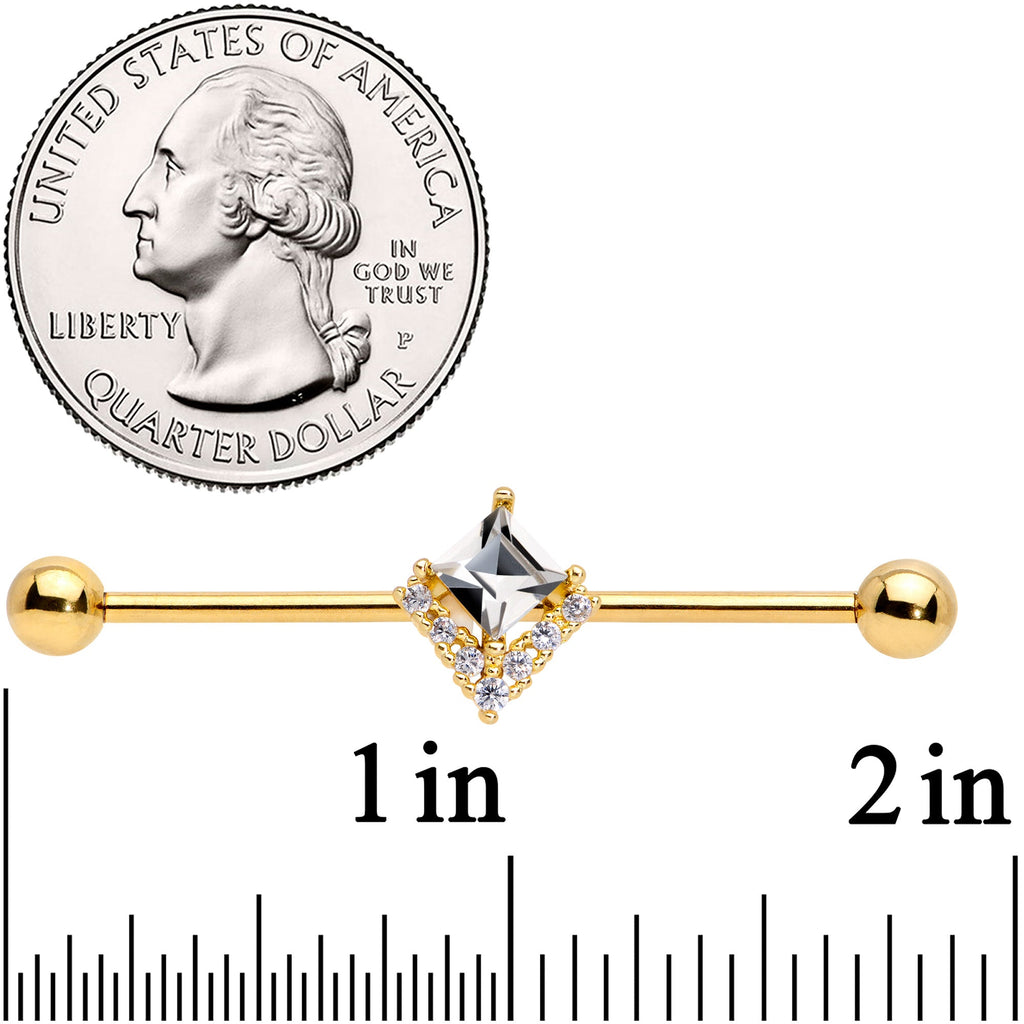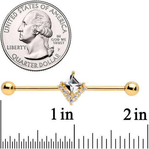14 Gauge Clear CZ Gem Gold Tone Chevron Industrial Barbell 38mm