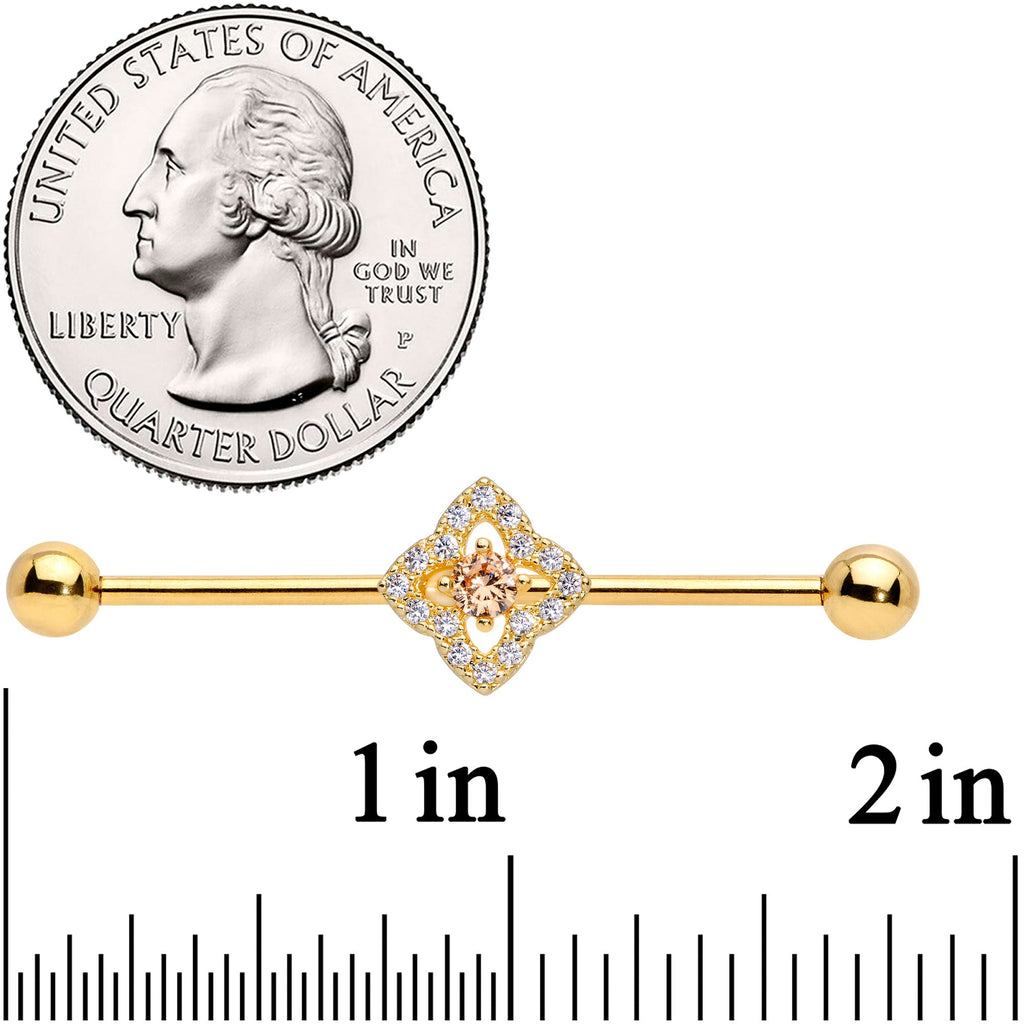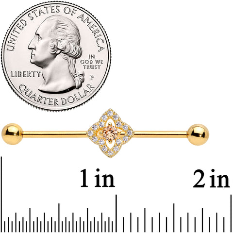 14 Gauge Clear CZ Gem Gold Tone Rhombus Royale Industrial Barbell 38mm