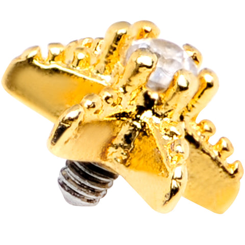 14G Clear CZ Gem Gold Tone Starfish Dermal Anchor Top