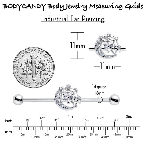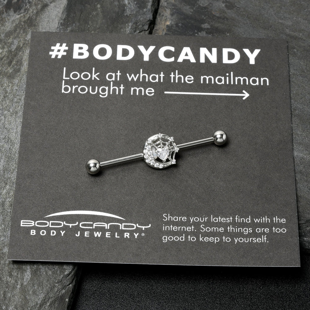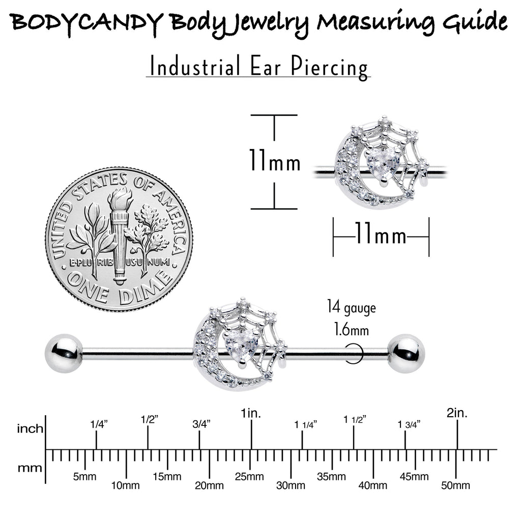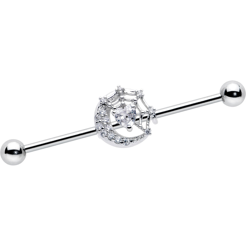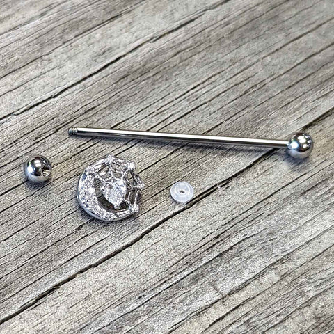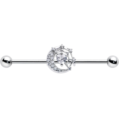 14 Gauge Clear CZ Gem Heart Web Moon Industrial Barbell 38mm