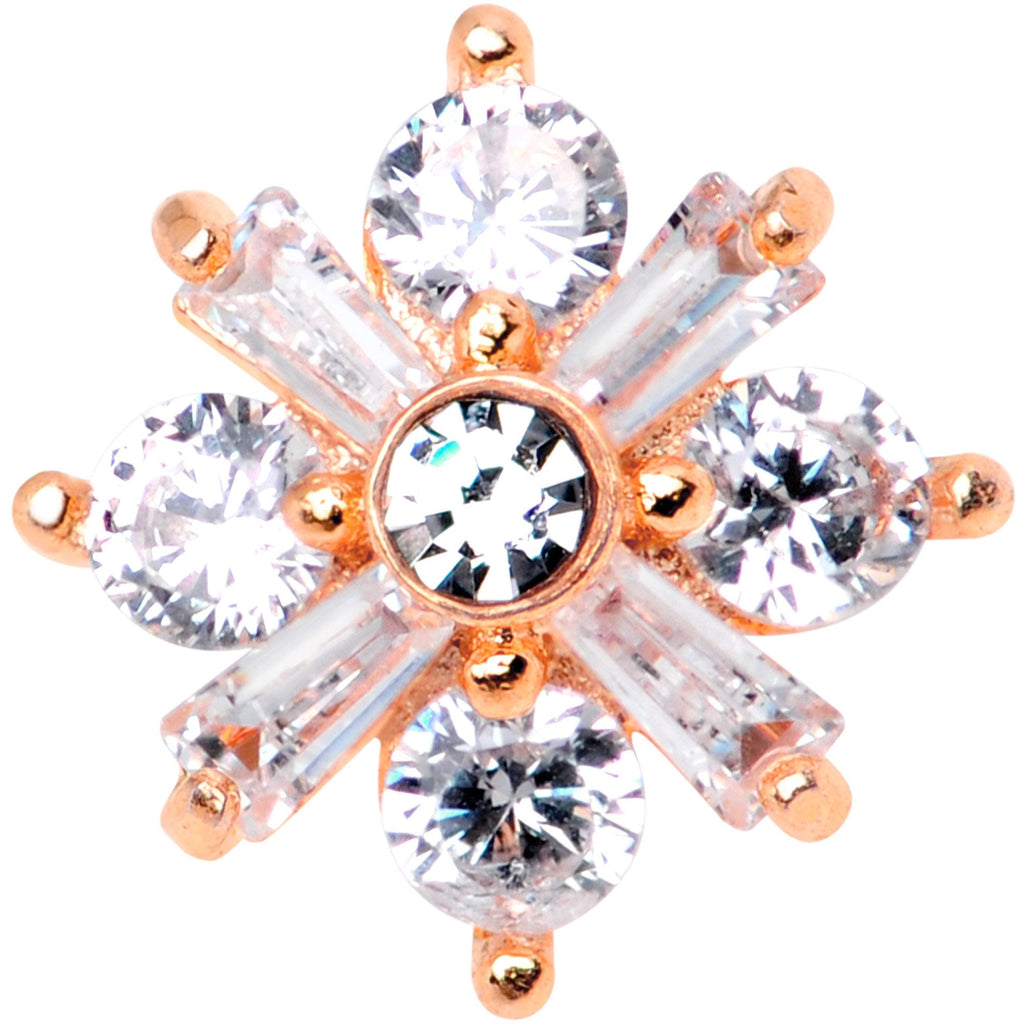 14 Gauge Clear CZ Gem Ice Princess Rose Gold Tone Dermal Anchor Top