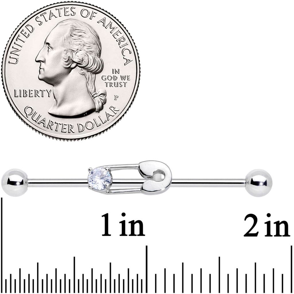 14 Gauge Clear CZ Gem Punk Safety Pin Industrial Barbell 38mm
