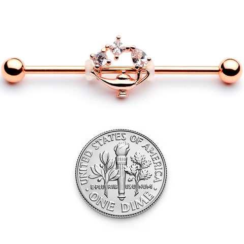 14 Gauge Clear CZ Gem Rose Gold Hue Genie Lamp Industrial Barbell 38mm