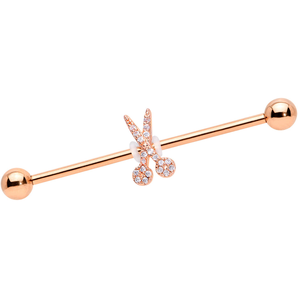 14G Clear CZ Gem Rose Gold Tone Scissors Industrial Barbell 38mm