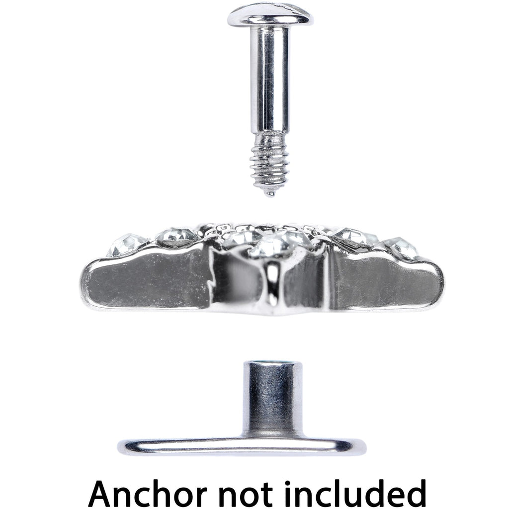 Looking to add some flair to your surface piercing? This dermal top is bursting with flair, with a 10mm clear gem encrusted five-pointed star as its focus. This star-shaped dermal top features a 14 gauge externally threaded dermal screw made with durable 316L surgical grade stainless steel, which screws into your surface anchor. Anchor not included.Specifications