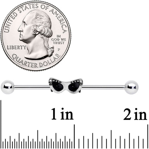 Hang on there modern life, let's add a little 50s glamour to your look! This 14 gauge helix barbell is made with a 1 1/2" durable 316L surgical grade stainless steel straight barbell with 5mm ball ends. It features a pair of black 50s-style cat's-eye sunglasses charm. The sunglasses charm can be slid up and down the length of the barbell industrial so you get just the look you want. Channel your inner pin-up with this industrial earring and rock these retro sunglasses!Specifications