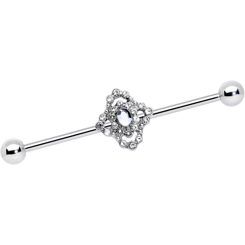 14 Gauge Clear Gem Baroque Cross Industrial Barbell 38mm
