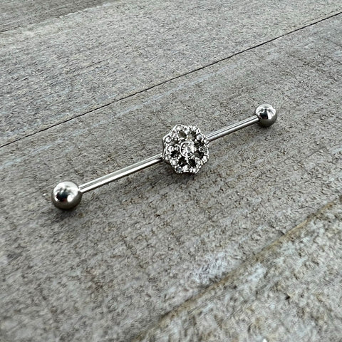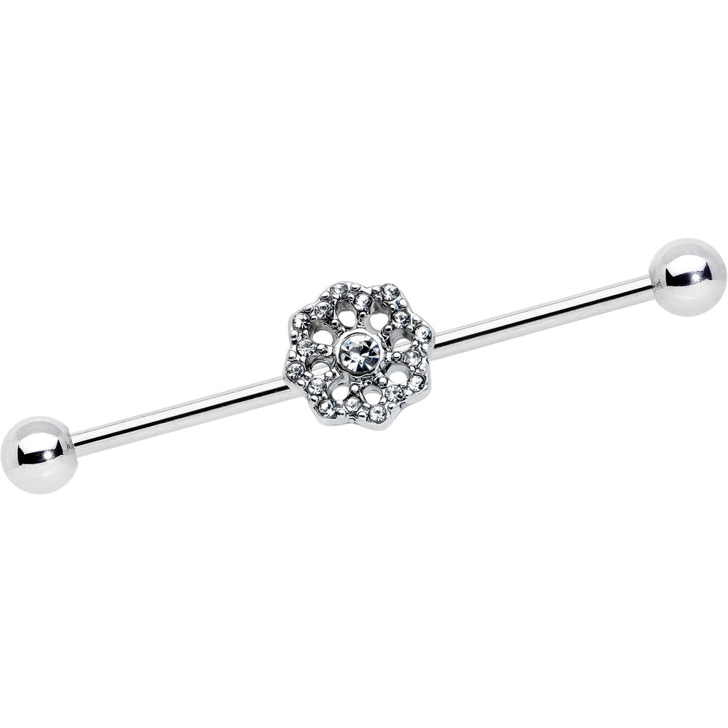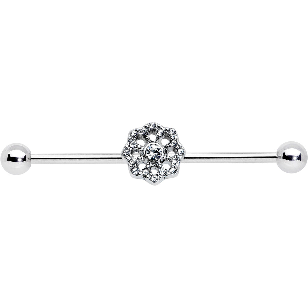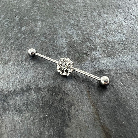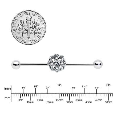 14 Gauge Clear Gem Baroque Fabulous Flower Industrial Barbell 38mm