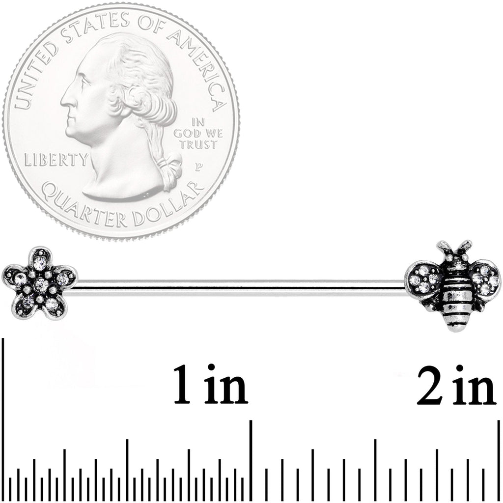 14 Gauge Clear Gem Bee Flower Industrial Barbell 38mm